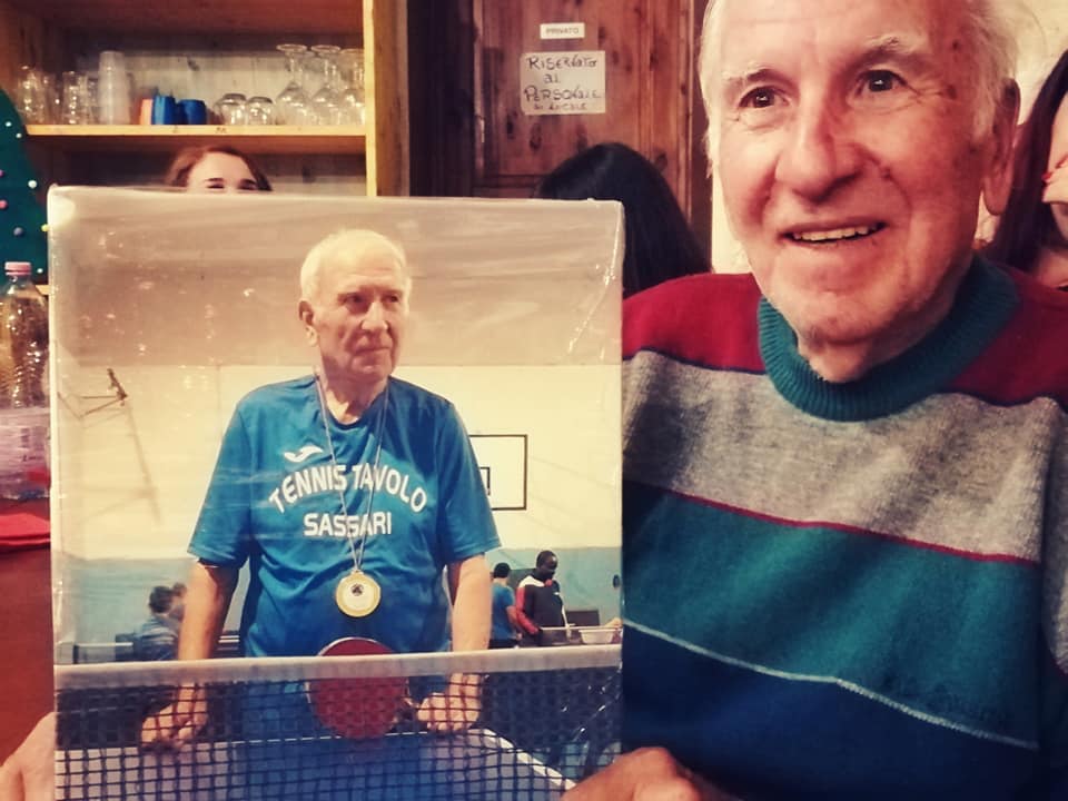 Si chiama passione e basta guardare gli occhi di Gianni quando parla di Ping pong per intravedere una fiammella che arde. Giovanni Palmas, per tutti Gianni, ha 85 anni e da 25 gioca per la Libertas Monterosello Sassari. In questi anni ha partecipato a 8 campionati Italiani, Jesolo, Ponte di legno, Riva del Garda, Bari, Riccione, un paio di volte a Terni dove nel 2017 è salito sul podio per un bel terzo posto nella categoria over 80. Tornei internazionali a Bosa e Nulvi dove nel 2019 in coppia con Samuel Paganotto ha conquistato la medaglia d’oro. Primi assoluti nel doppio.